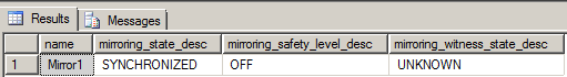 ALTER DATABASE [Mirror1] SET SAFETY FULL