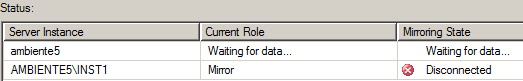 Como nesse operation mode não temos um failover automático, o mirror fica nesse status até que o servidor A volte ou você force o Mirror a assumir como principal.