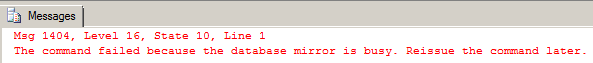 Database Mirroring – Error: The Command Failed Because The Database Mirror Is Busy