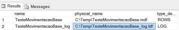 FILENAME = ‘C:\Temp\NovoCaminho\TesteMovimentacaoBase.mdf’);