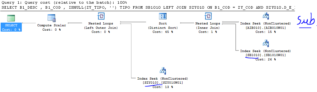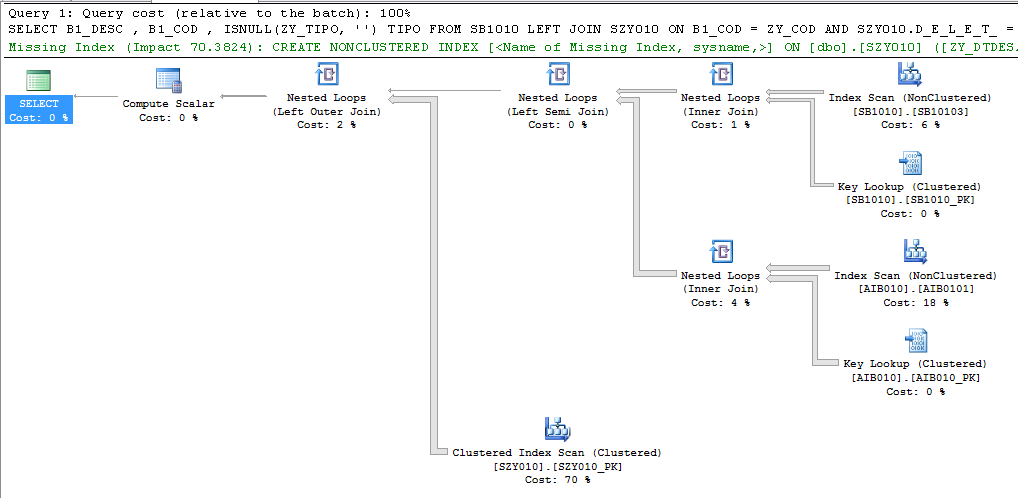 Table 'SZY010'. Scan count 15, logical reads 30 Table 'SB1010'. Scan count 223, logical reads 673 Table 'AIB010'. Scan count 1, logical reads 5 SQL Server Execution Times: CPU time = 0 ms, elapsed time = 43 ms. |