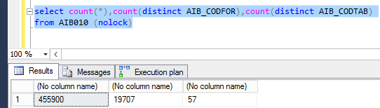 No nosso caso, a coluna AIB_CODFOR é muito melhor para ter um índice do que a coluna AIB_CODTAB, pois ela tem muito mais valores distintos. É uma coluna mais seletiva e um índice por ela deve beneficiar outras queries que acessam essa tabela.