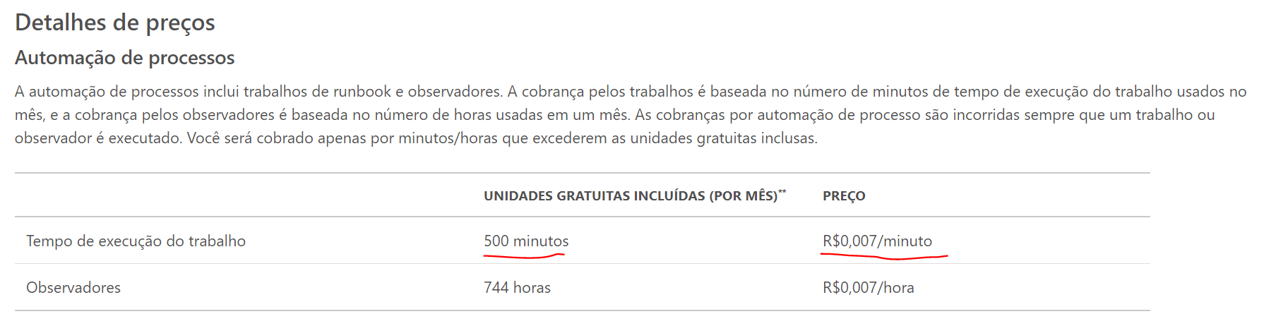 Fonte: https://azure.microsoft.com/pt-br/pricing/details/automation/