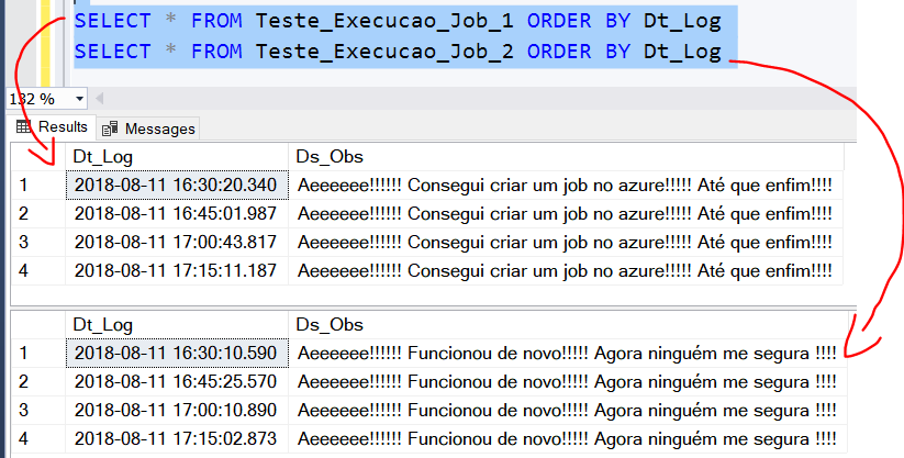 Esperei quase uma hora para deixar os agendamentos executarem e mostrar os resultados para vocês.