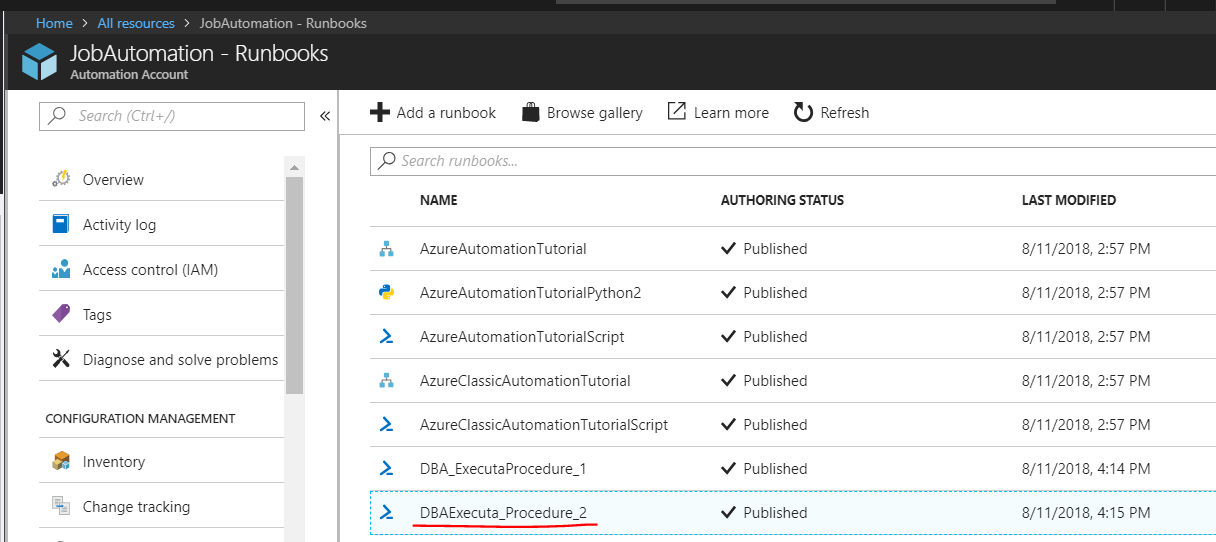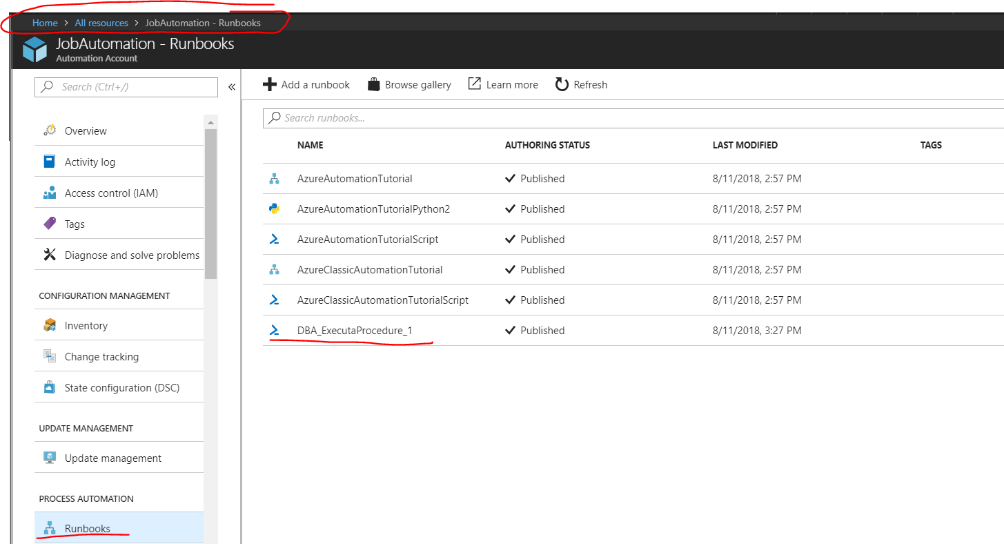 2) Criar um Runbook para executar nossa procedure