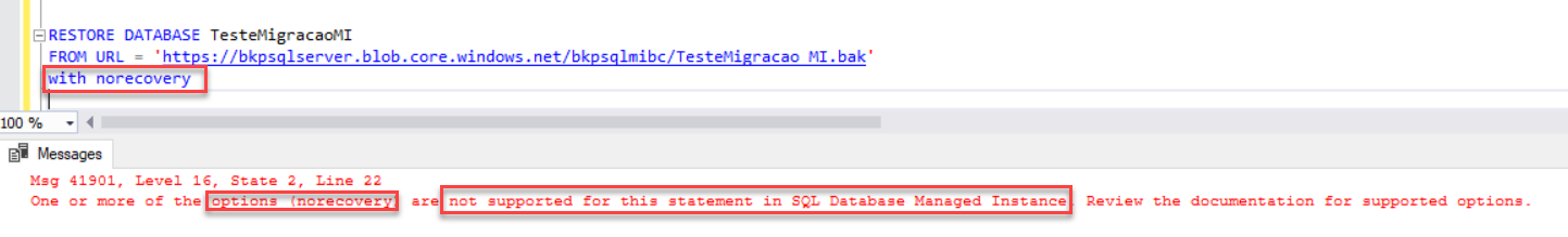 Se tentar restaurar um backup com NORECOVERY vai tomar o erro abaixo: