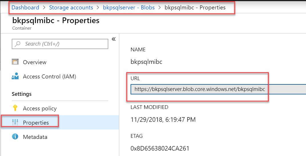 Para funcionar temos que criar a credencial com nome do nosso caminho do blob storage + container que conseguimos pegar na tela abaixo: