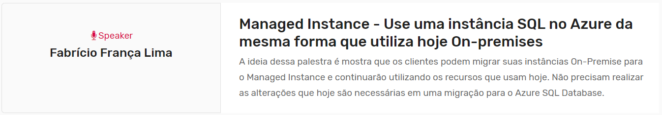 Yes!!! Vou fazer uma palestra sobre Azure SQL Database Managed Instance.