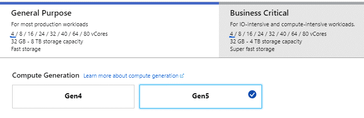 Fiz algumas simulações no portal do Azure para vocês (Gen5) :