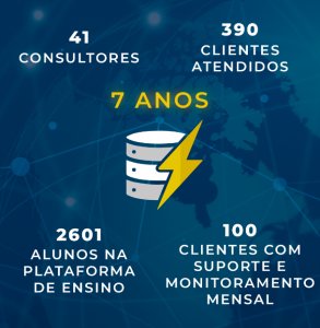 - Agora com 7 anos temos 41 consultores, 390 clientes distintos atendidos, 100 clientes fixos com suporte e monitoramento mensal e 2.601 alunos na plataforma de cursos.
