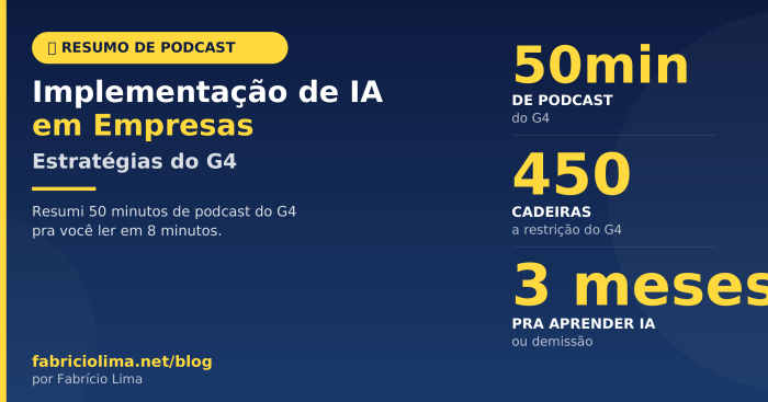 Esta é uma série onde eu, Fabrício, compartilho resumos de podcasts e vídeos que considero interessantes sobre tecnologia, negócios e gestão. Trago os principais pontos de cada episódio e, no final, minha opinião pessoal — sem IA, sem filtro. A ideia é que você ganhe tempo acessando o conteúdo essencial e, se curtir, assista ao original completo.