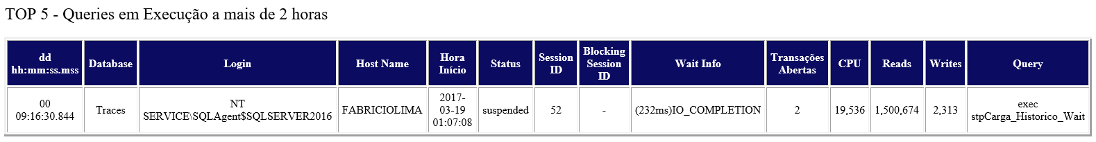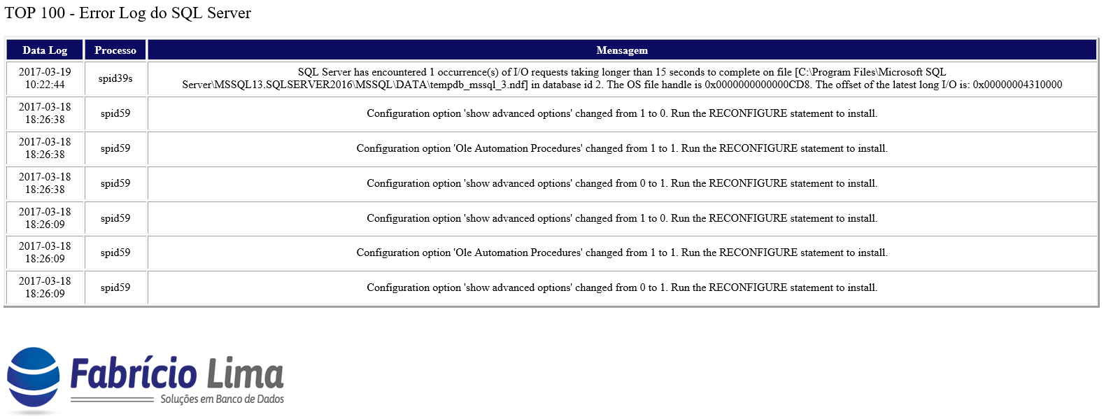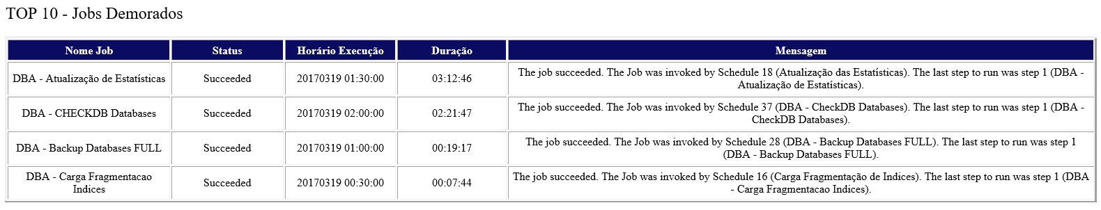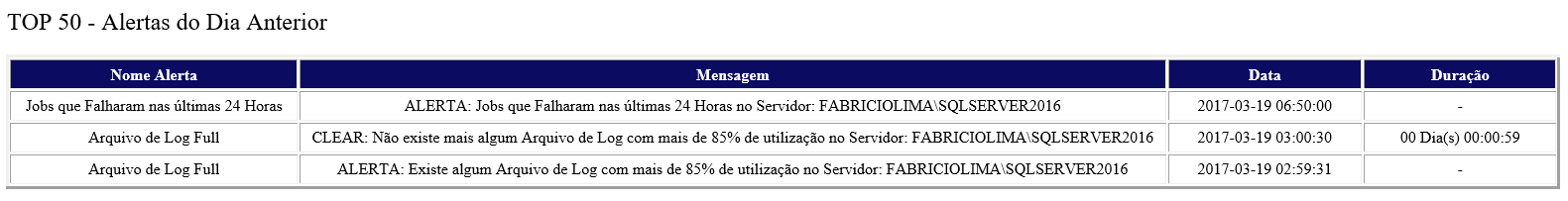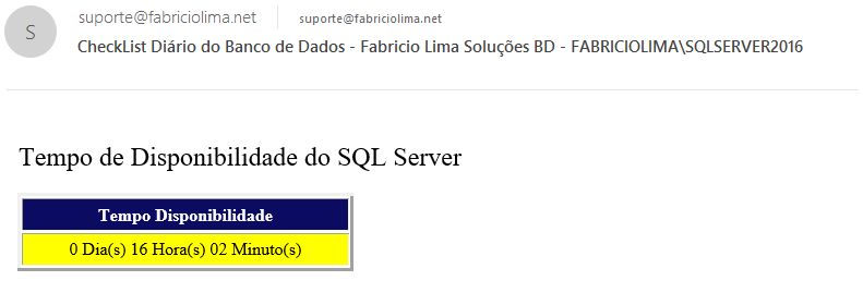 Um dos produtos que os clientes mais gostam da minha consultoria é a criação de um CheckList diário do ambiente deles, onde diariamente um e-mail é enviado para os responsáveis pelo monitoramento do banco de dados com todas as informações abaixo:
