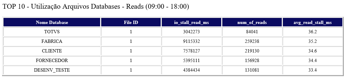 8. Informações sobre a Leitura nos arquivos do banco de dados.