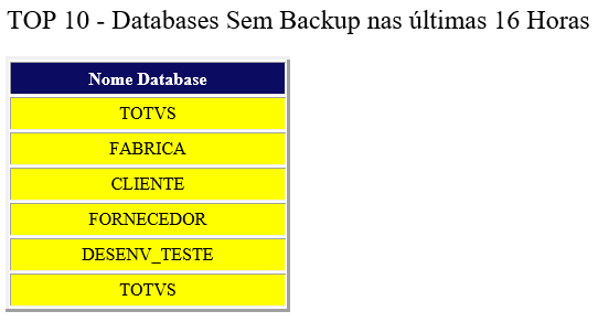 9. Monitoramento das bases que não possuem backup nas últimas 16 horas.