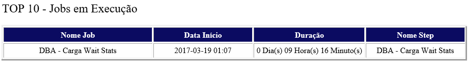 12. Monitoramento dos jobs que estão em execução a mais de 10 minutos.
