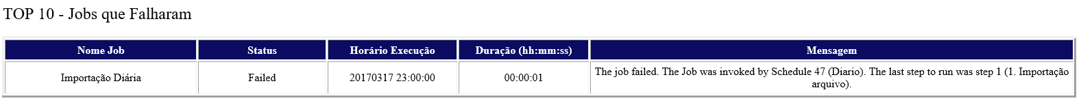 14. Informações sobre todos os jobs que falharam nas últimas 24 horas.