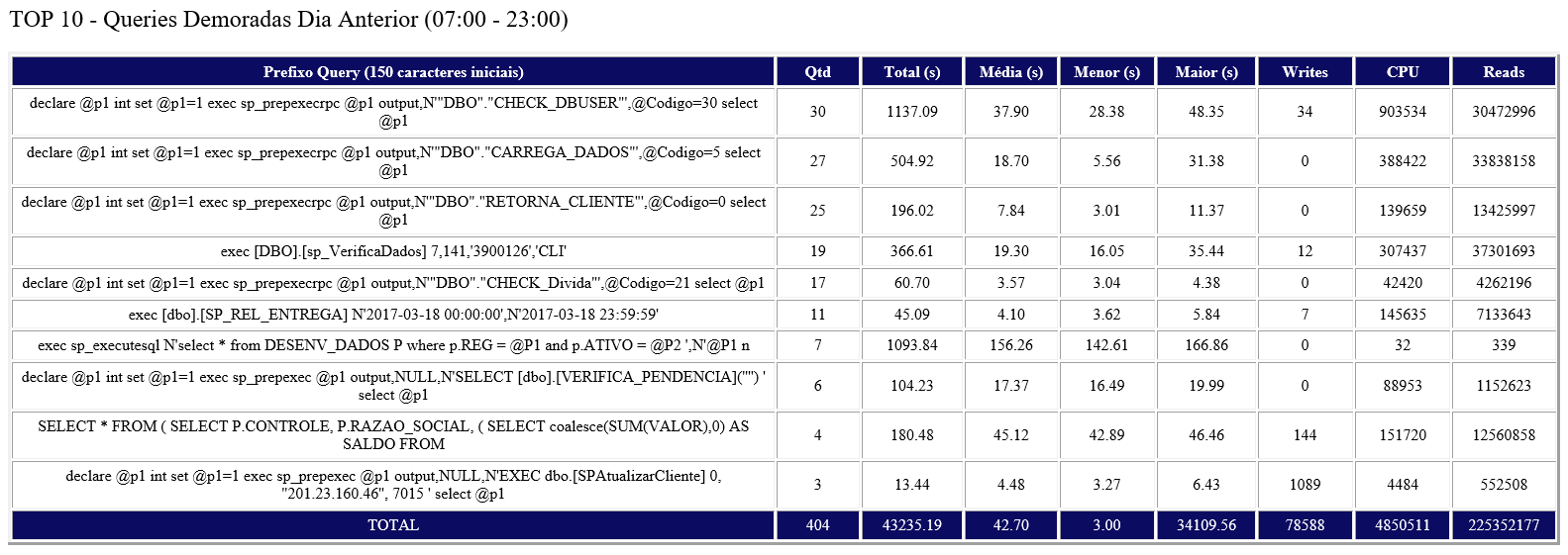 16. Acompanhamento das queries mais lentas do dia anterior.