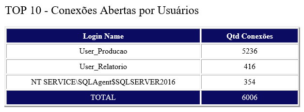 18. Informações sobre a quantidade de conexões abertas no banco de dados.