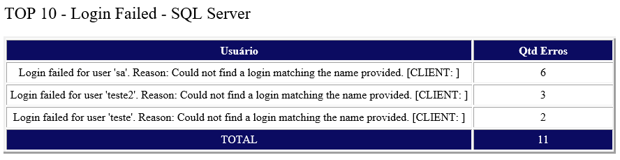 23. Informações sobre erro de falha de login no SQL Server.