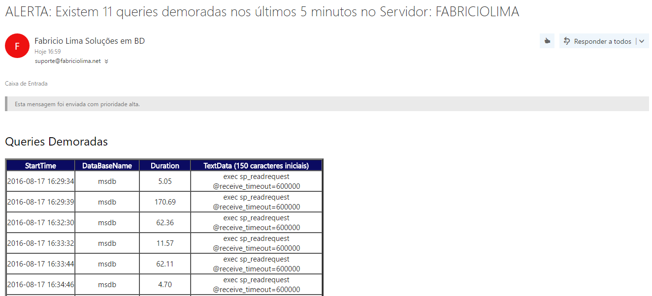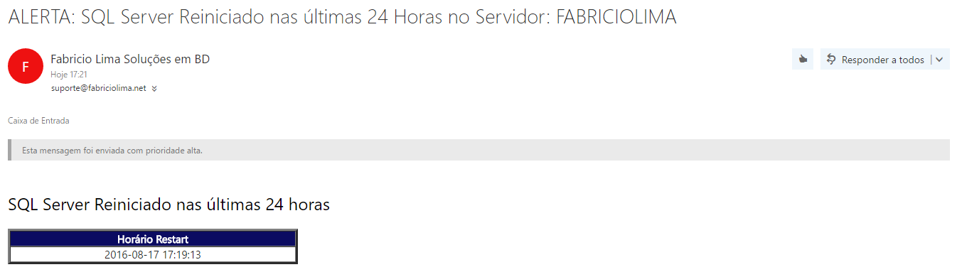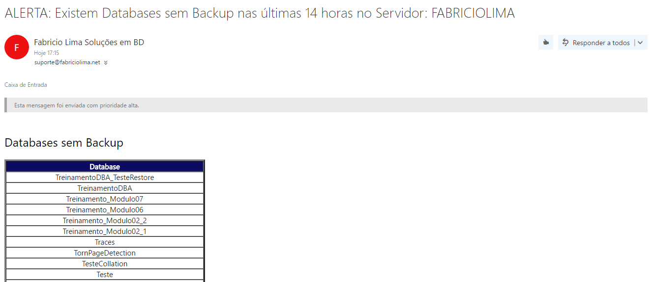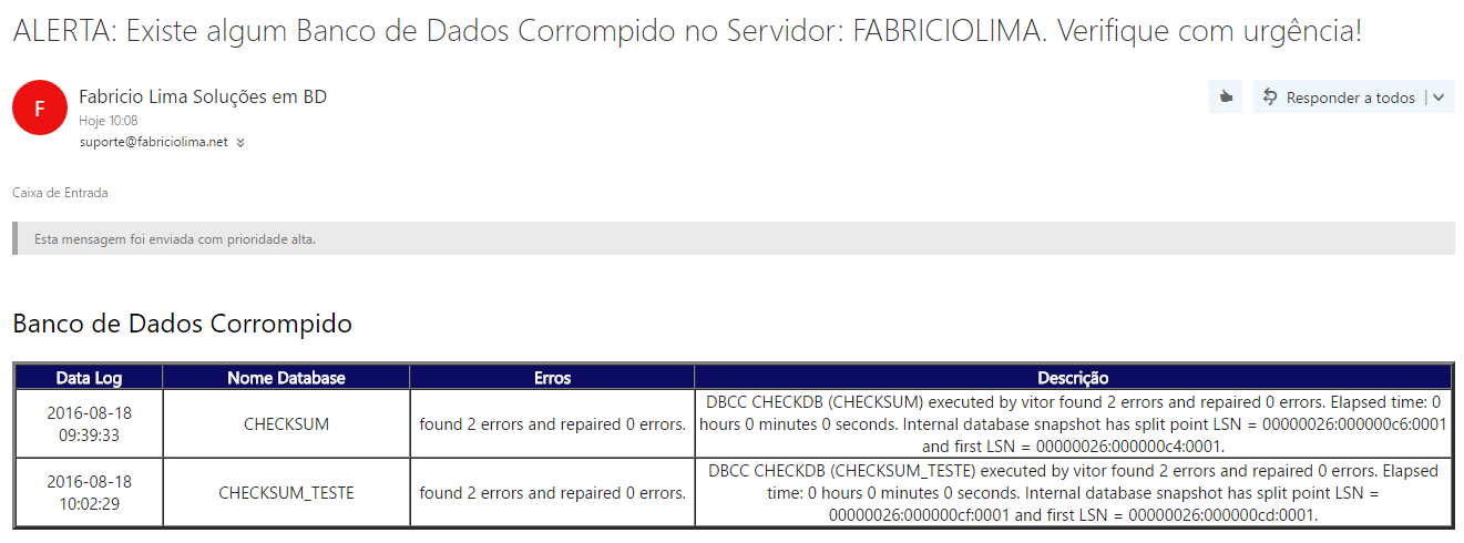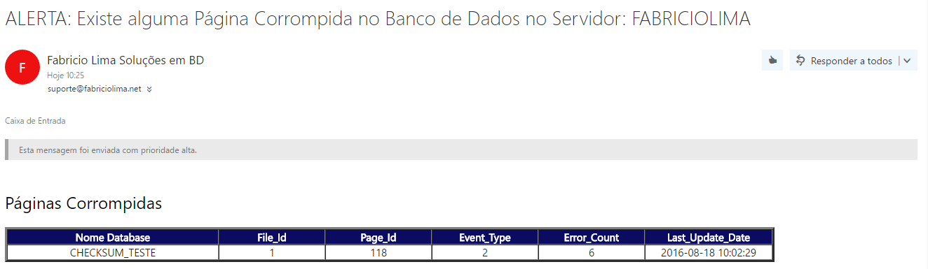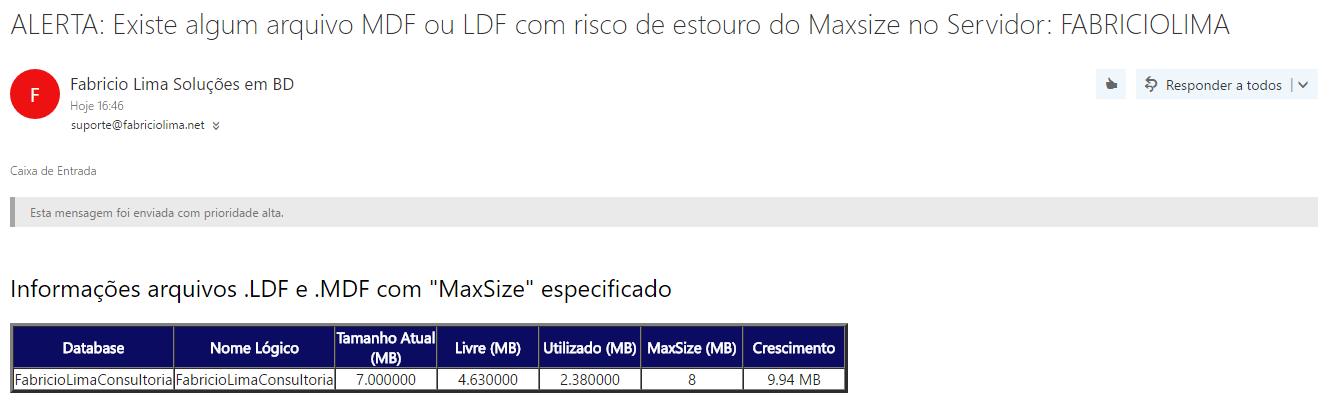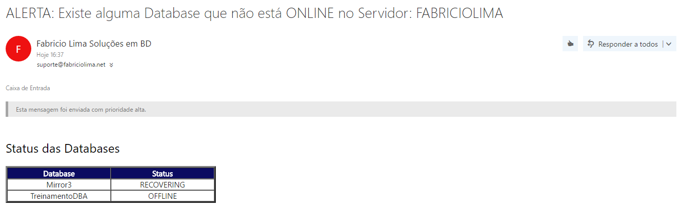 Segue abaixo a visualização dos Alertas que chegam por e-mail: