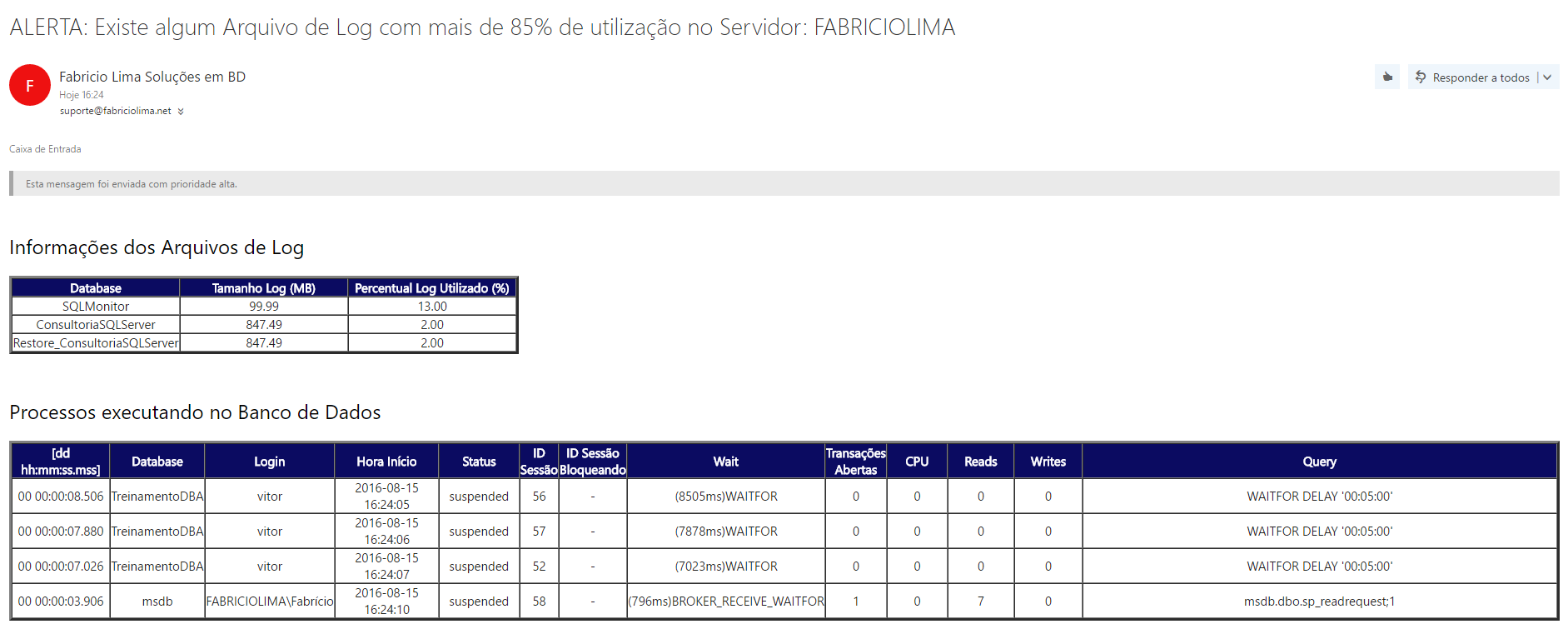 Update dia 22/09/2019: Veja nesse post uma nova versão com 40 alertas para criar no seu BD SQL Server: