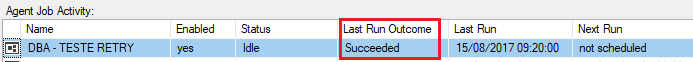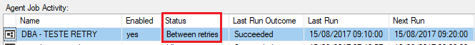 • Repare que o Status do JOB fica como “Between retries” enquanto não terminar as tentativas ou executar com sucesso/erro.